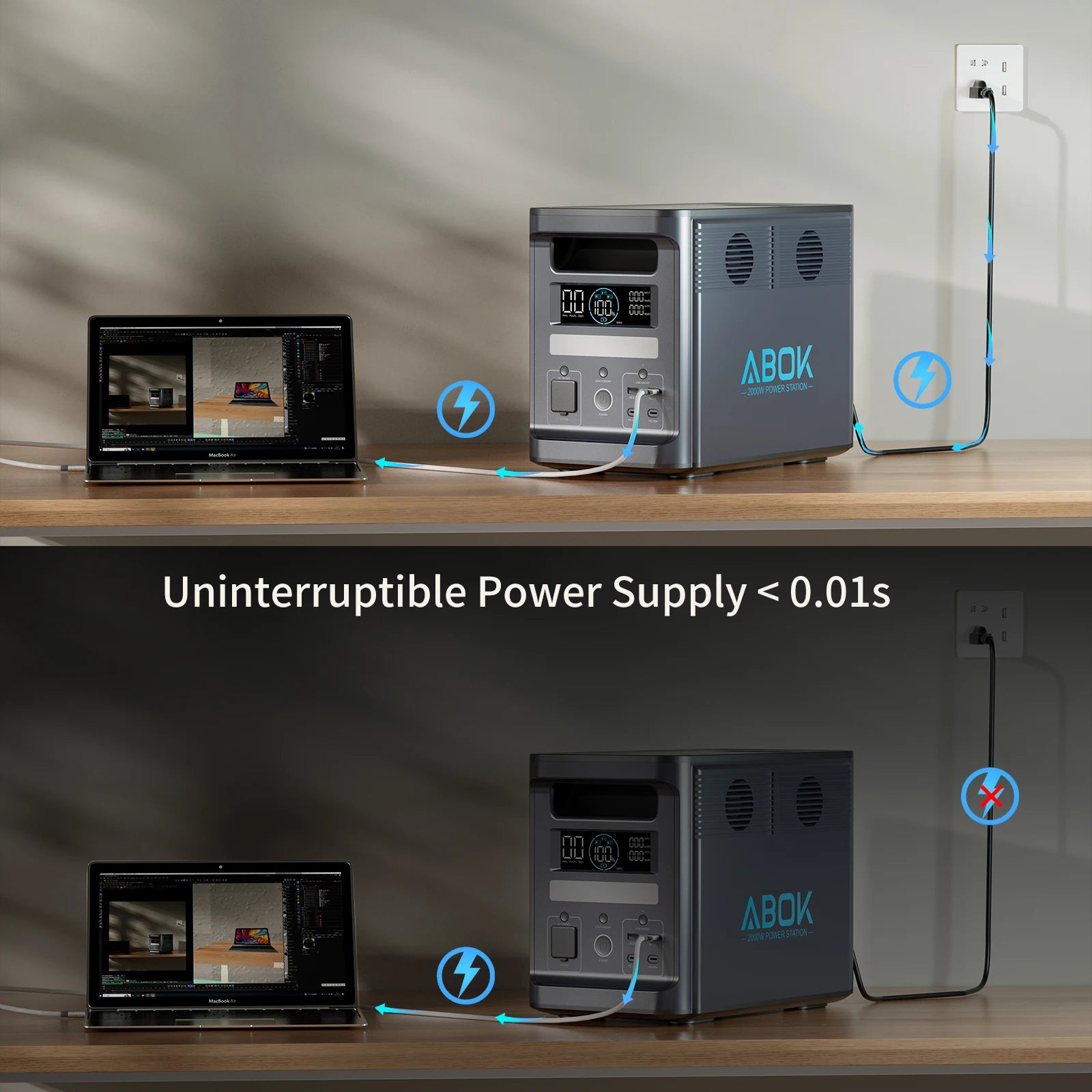 ABOK Ark2000 Estación de energía portátil 2000W 1536Wh LiFePO4 Batería Generador solar Banco de energía Carga rápida para el hogar, RV, Camping