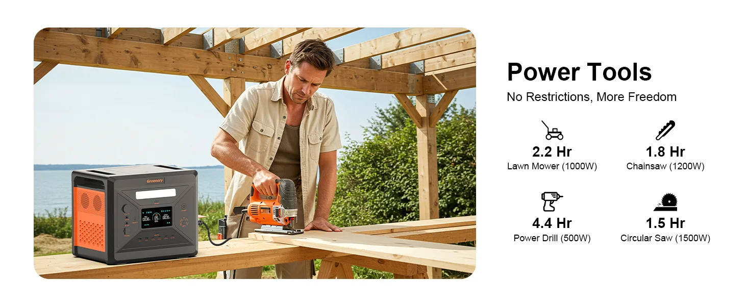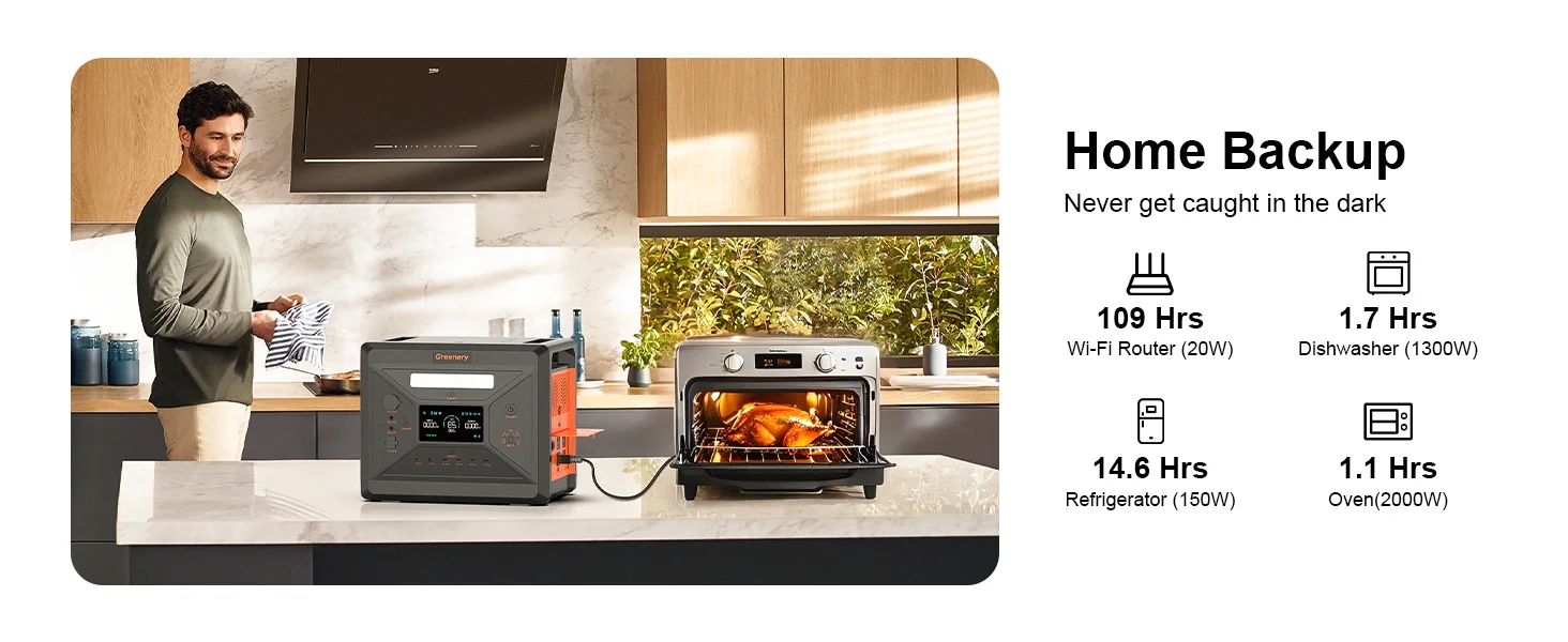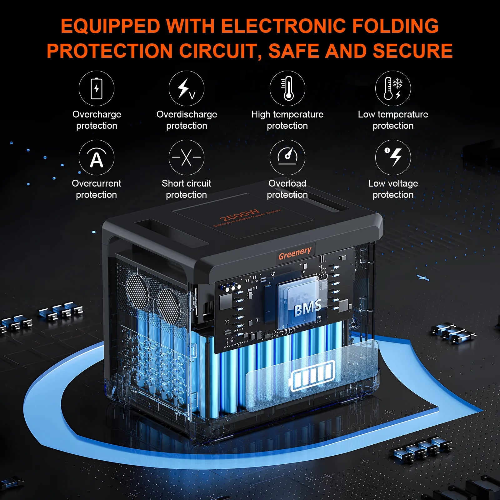 Greeny G2500 Estación de energía portátil Batería LiFePO4 de 2304 WH con 2500 W (pico de 4800 W) Generador solar de salida de CA para emergencias en el hogar