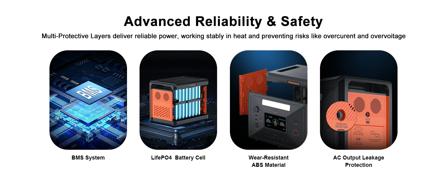 El producto cuenta con una batería LiFePO4 de alta calidad que tiene una vida útil de 15 años con más de 3500 ciclos de carga/descarga.Esto es siete veces más largo que las baterías convencionales y a menor costo.También cuenta con un sistema de gestión de batería (BMS) y una unidad de control (MCU) para gestionar el voltaje y la temperatura de la celda de la batería.