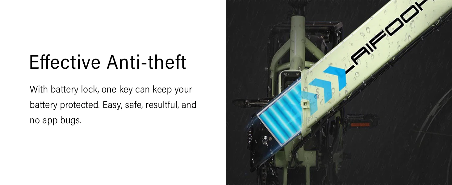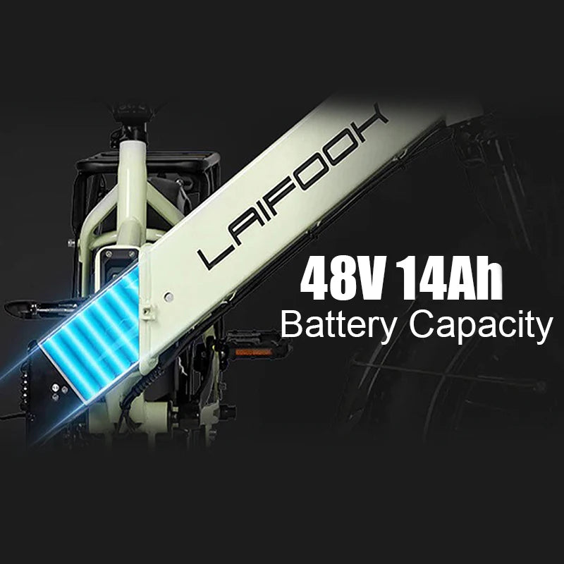 Batería: Batería de iones de litio de 48 V 14 Ah con seguridad inteligente BMS, oculta y extraíble