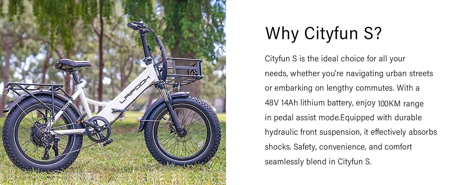 Bicicleta eléctrica Laifook Cityfun S, bicicleta eléctrica plegable de 250W, 48V, 14Ah, bicicleta eléctrica de 20 pulgadas, neumáticos gruesos, bicicleta de montaña eléctrica con portaequipajes