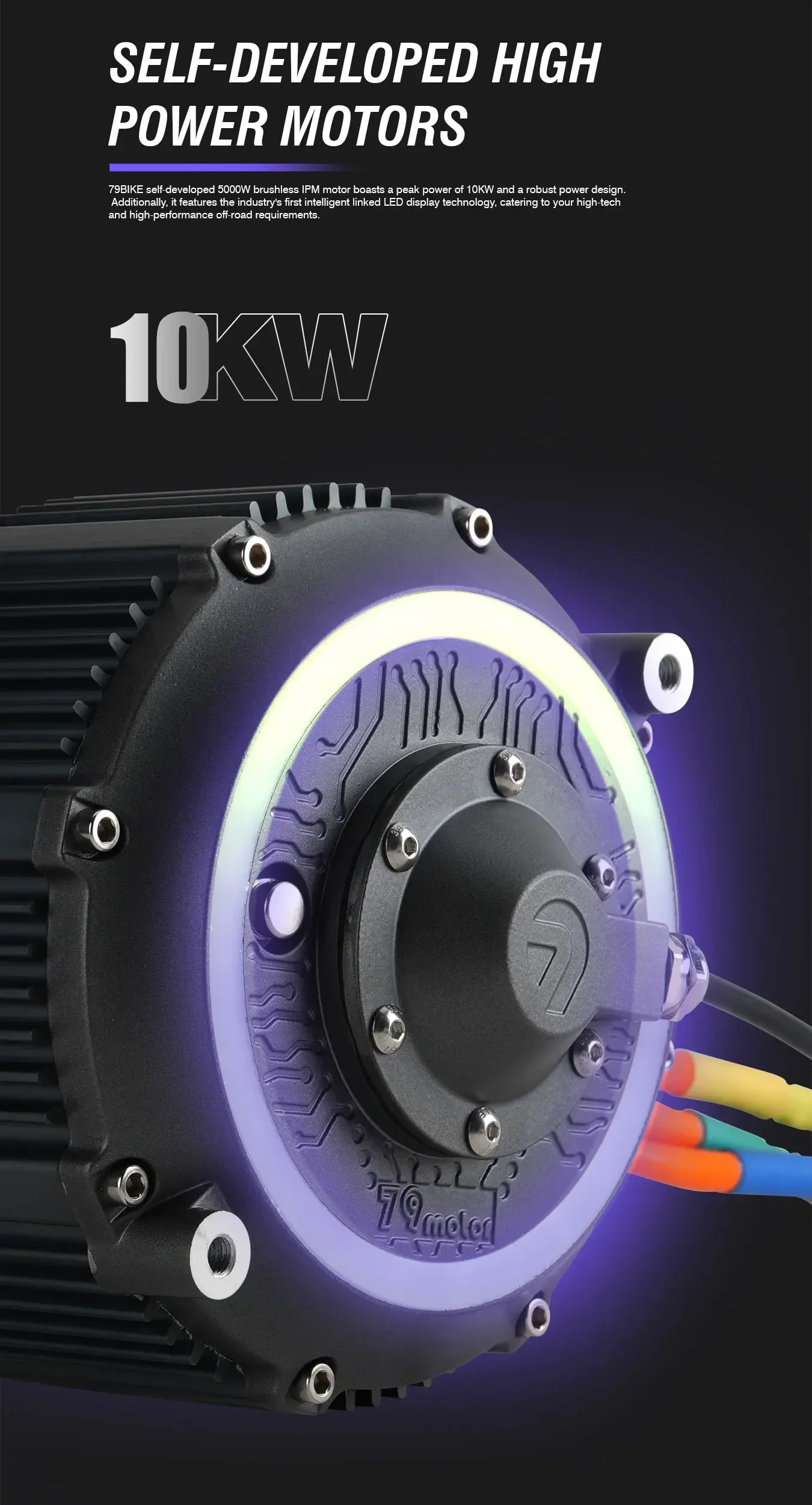 El motor lPM sin escobillas de 8500 W de desarrollo propio de 79BlKE cuenta con una potencia máxima de 10 KW y un diseño de potencia robusto.Además, cuenta con la primera tecnología de pantalla LED inteligente vinculada de la industria, que se adapta a suRequisitos todoterreno de alta tecnología y alto rendimiento.
