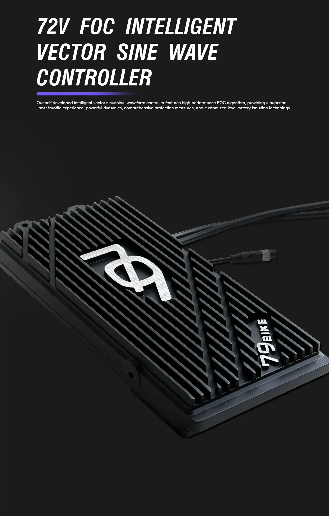 Controlador de onda sinusoidal vectorial inteligente de desarrollo propio, algoritmo FoC de alto rendimiento, experiencia de acelerador súper lineal, potencia súper potente, medidas de protección perfectas, tecnología de aislamiento de batería de calidad personalizada |