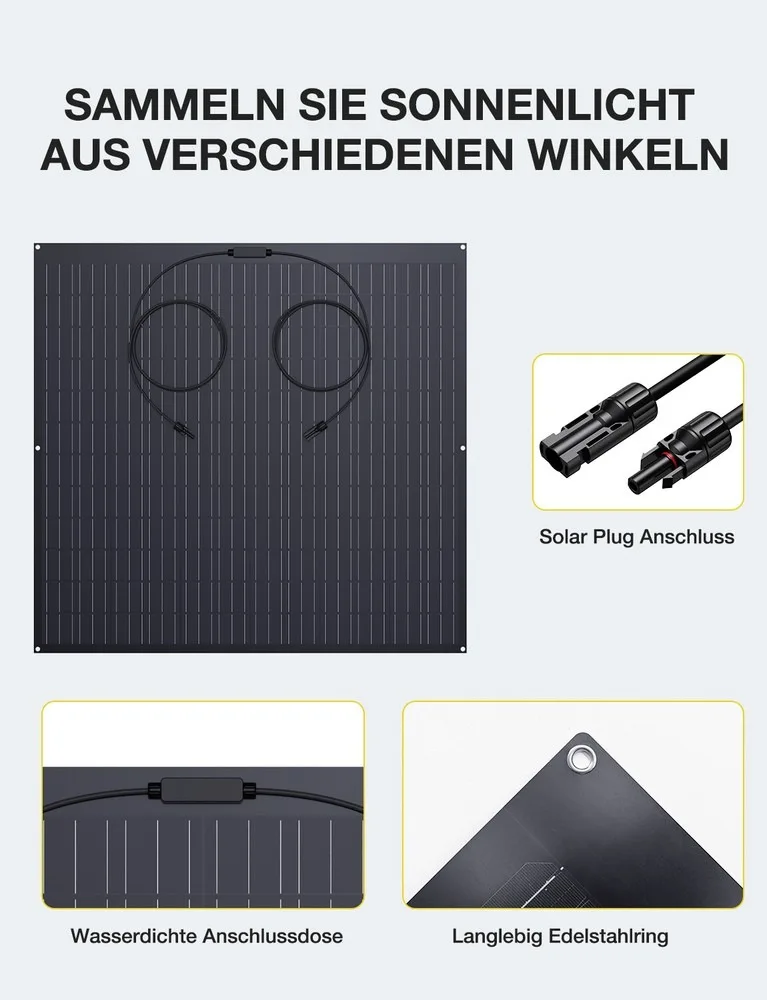 ¡NUEVO! Kit de panel solar flexible de 480 W / 960 W (2 × 240 W / 4 × 240 W), superficie ETF monocristalina, resistente al IP67, sistema de balcón para reloj