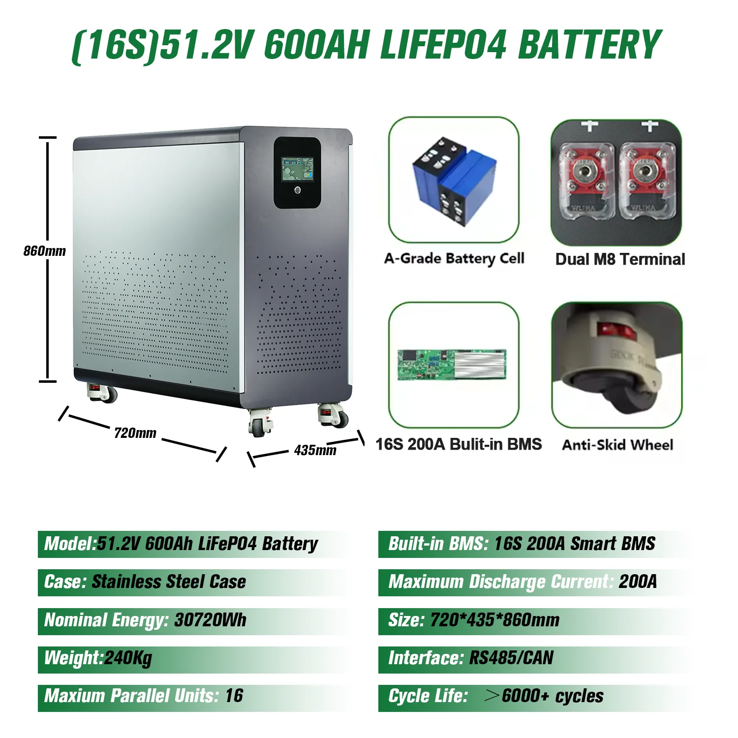 Features 3: 51.2V 600Ah LiFePO4 Battery