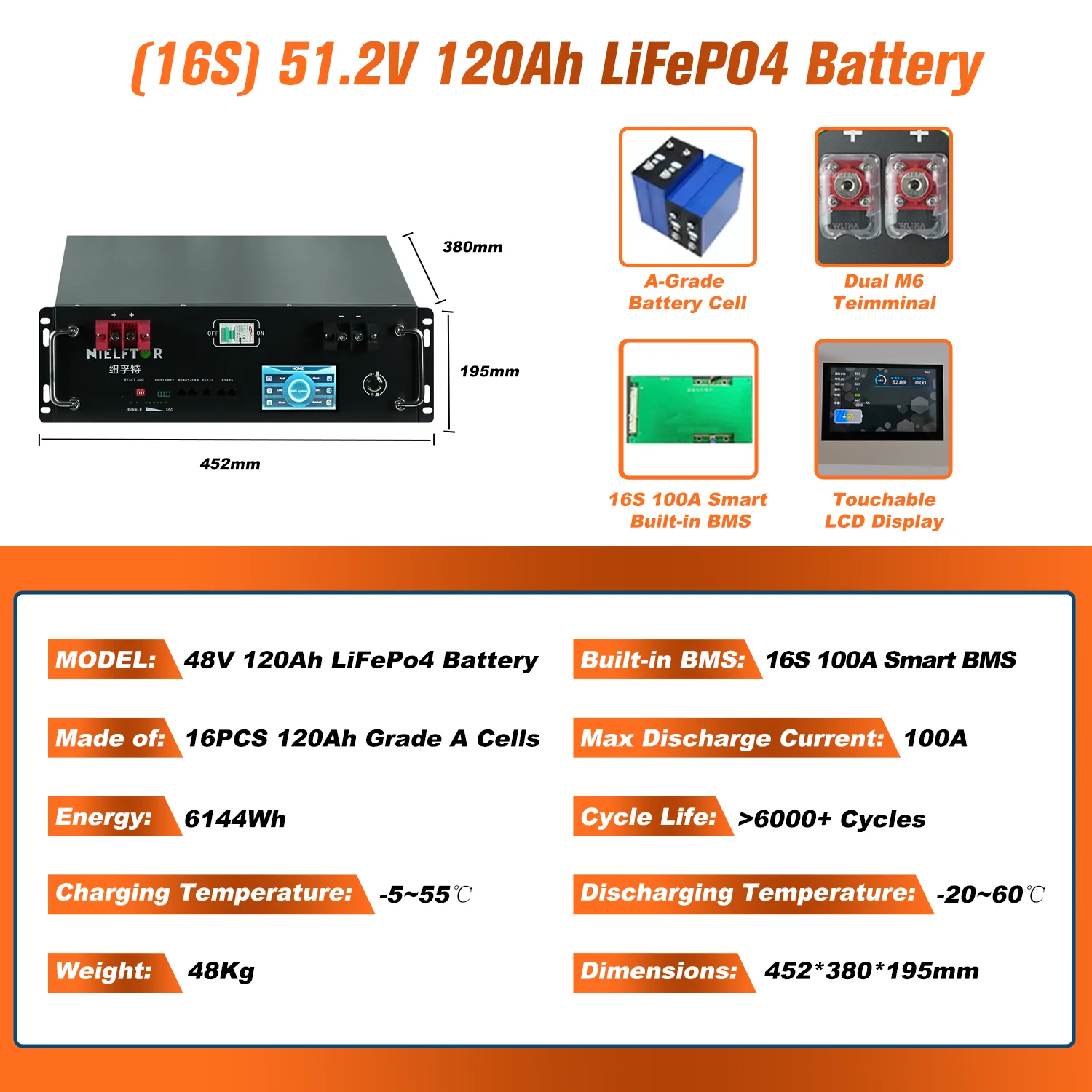 Features 4: 51.2V 100Ah 120Ah 200Ah 300Ah 460Ah 600Ah LiFePO4 Battery