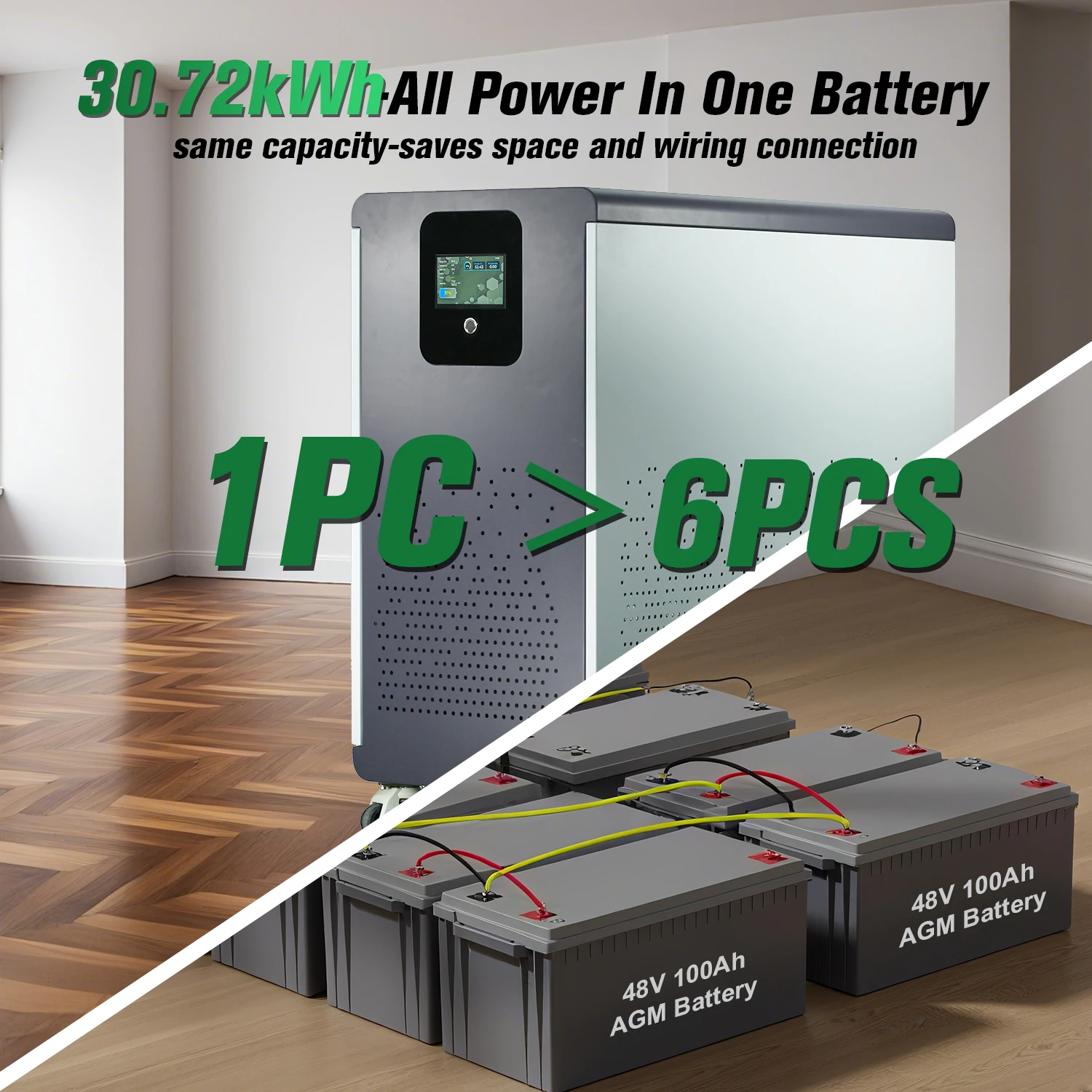 Gran potencia de 30,72 kW con la misma capacidad ahorra espacio y conexión de cableado