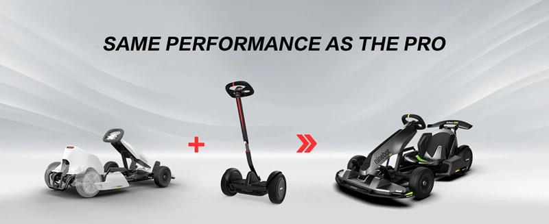 ¿Quieres mejorar tu aventura?Agregue el kit Ninebot Gokart y experimente el mismo feroz rendimiento que el Gokart PRO.