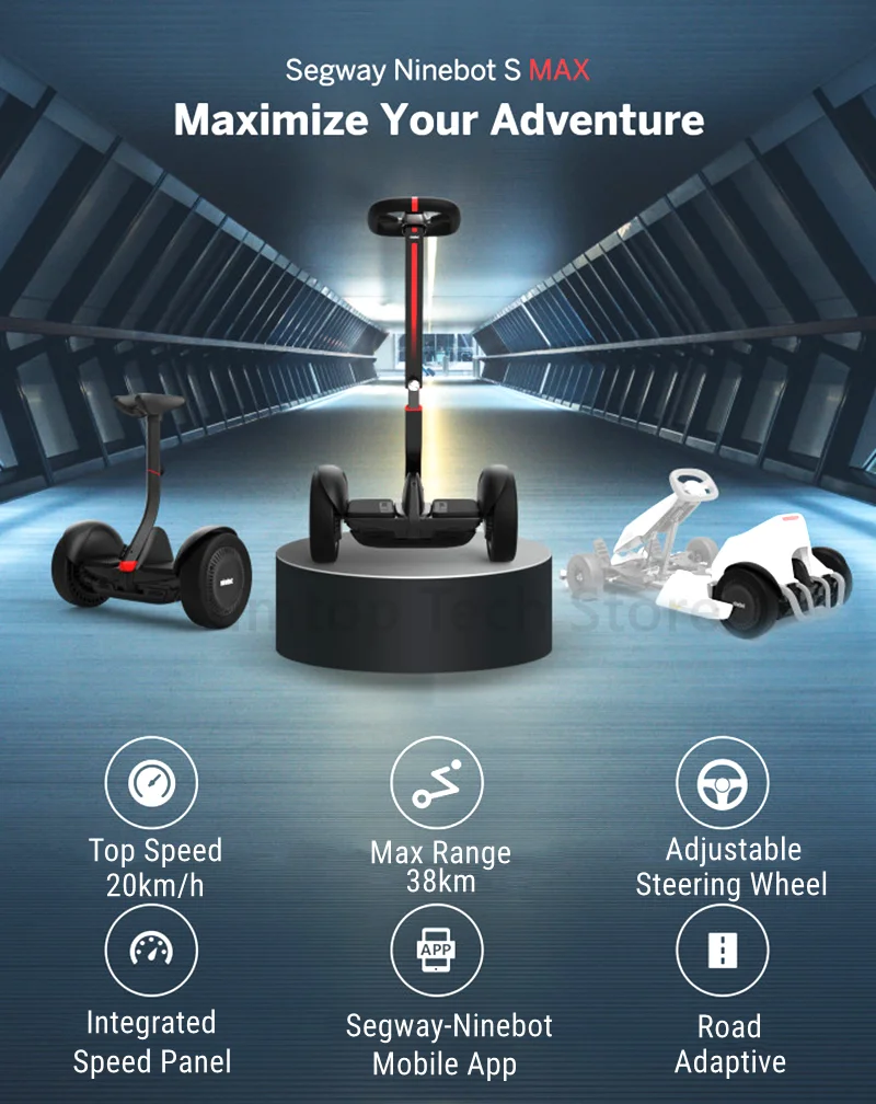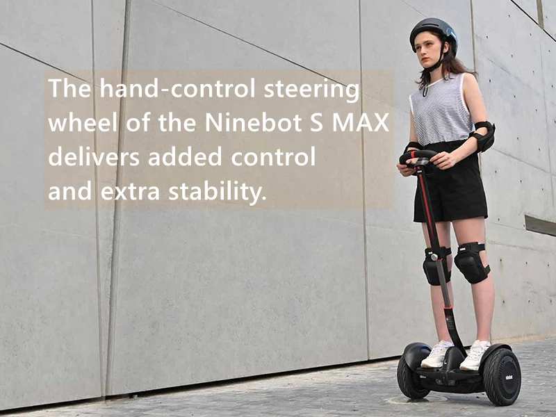 El Ninebot S MAX es una versión sobrealimentada del scooter de dos ruedas autequilibrado Ninebot S, con mayor velocidad y mayor alcance.Cuenta con un volante retráctil controlado manualmente que es fácil de usar y proporciona estabilidad adicional, así como un panel de velocidad integrado.Además, para mayor aventura, Ninebot S MAX también se puede convertir fácilmente en Ninebot GoKart MAX con el Ninebot GoKart Kit.