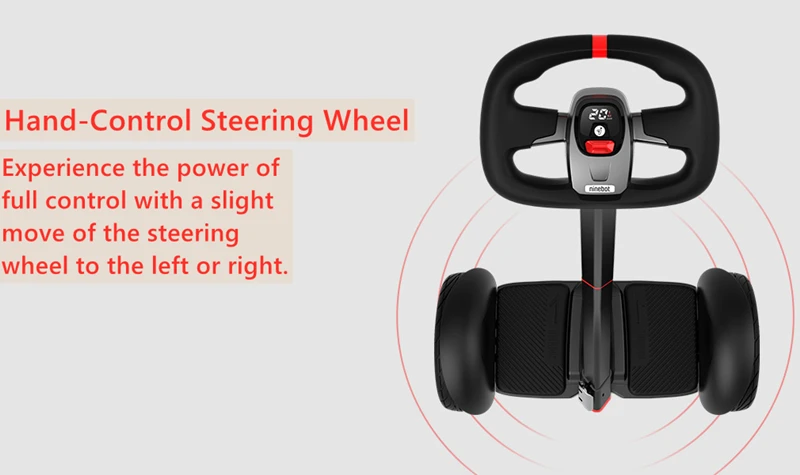 El volante de control manual del Ninebot S MAX ofrece mayor control y estabilidad adicional.Experimente la potencia del control total con un ligero movimiento del volante hacia la izquierda o hacia la derecha.