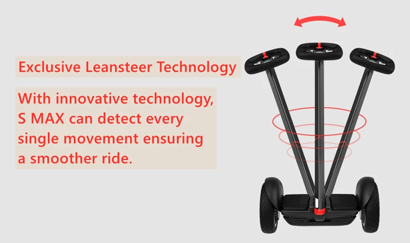 Con nuestra innovadora tecnología Leansteer, Ninebot S MAX responde al funcionamiento con una sensibilidad de 0,01 segundos, detectando cada movimiento, lo que garantiza una conducción más suave y lo lleva dónde desea estar en poco tiempo.